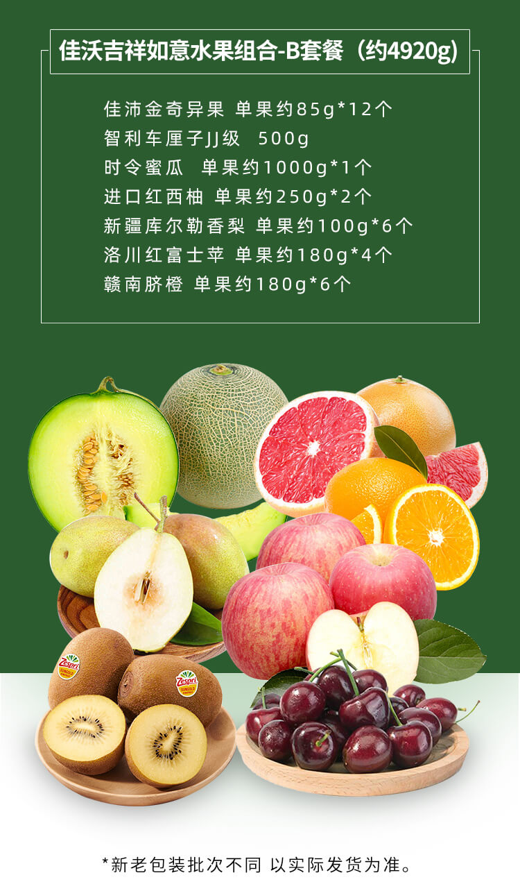 本商品开票明细为: 【佳沃吉祥如意水果组合-B套餐(约4920g)】